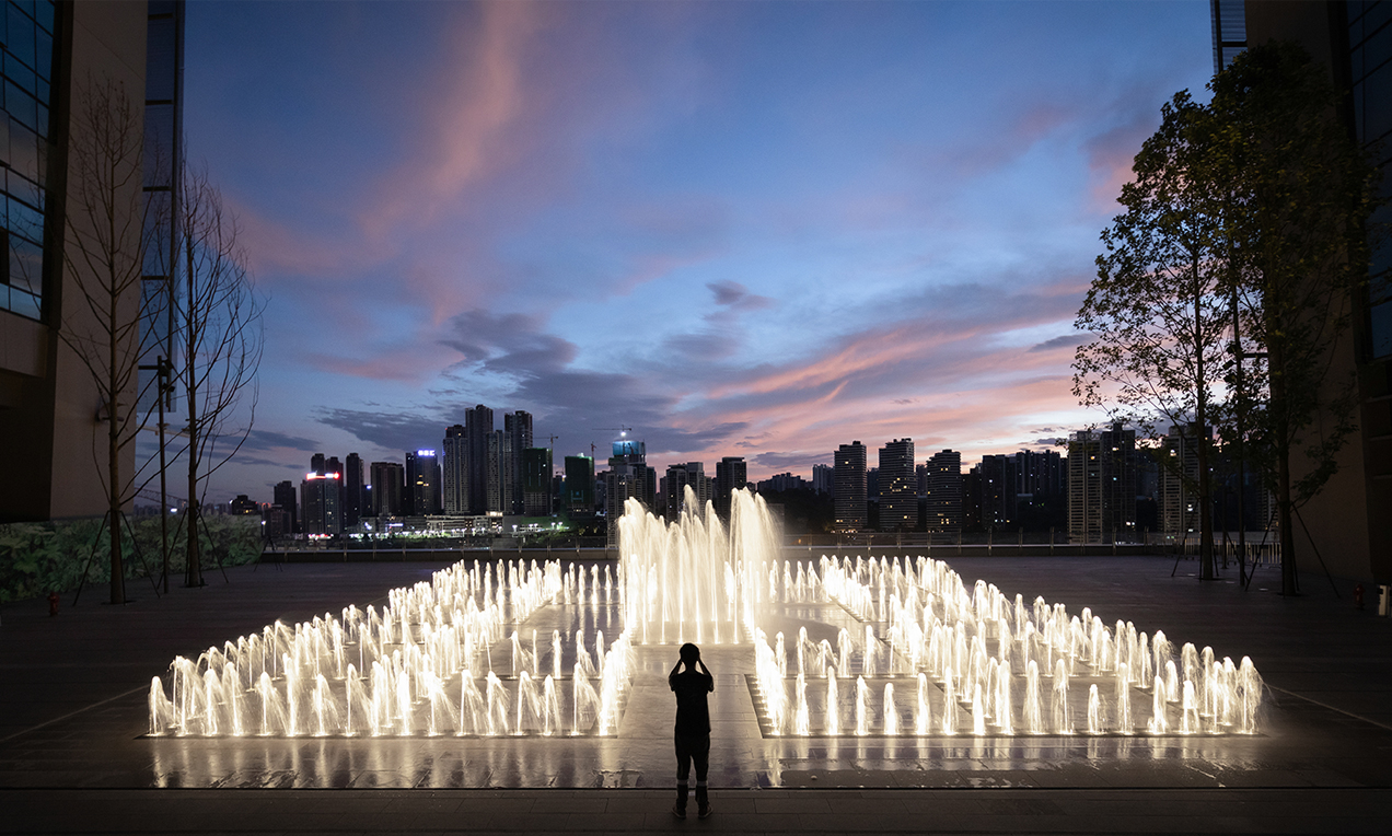 水本無形,它的物理特性讓它能輕易地跟隨容器而呈現(xiàn)不同的面貌。獨(dú)特的延展性使得水能呈現(xiàn)無以計(jì)數(shù)的不同效果。燈光的布置,介質(zhì)的紋理,顏色和動態(tài)都能給水帶來無窮的變化。